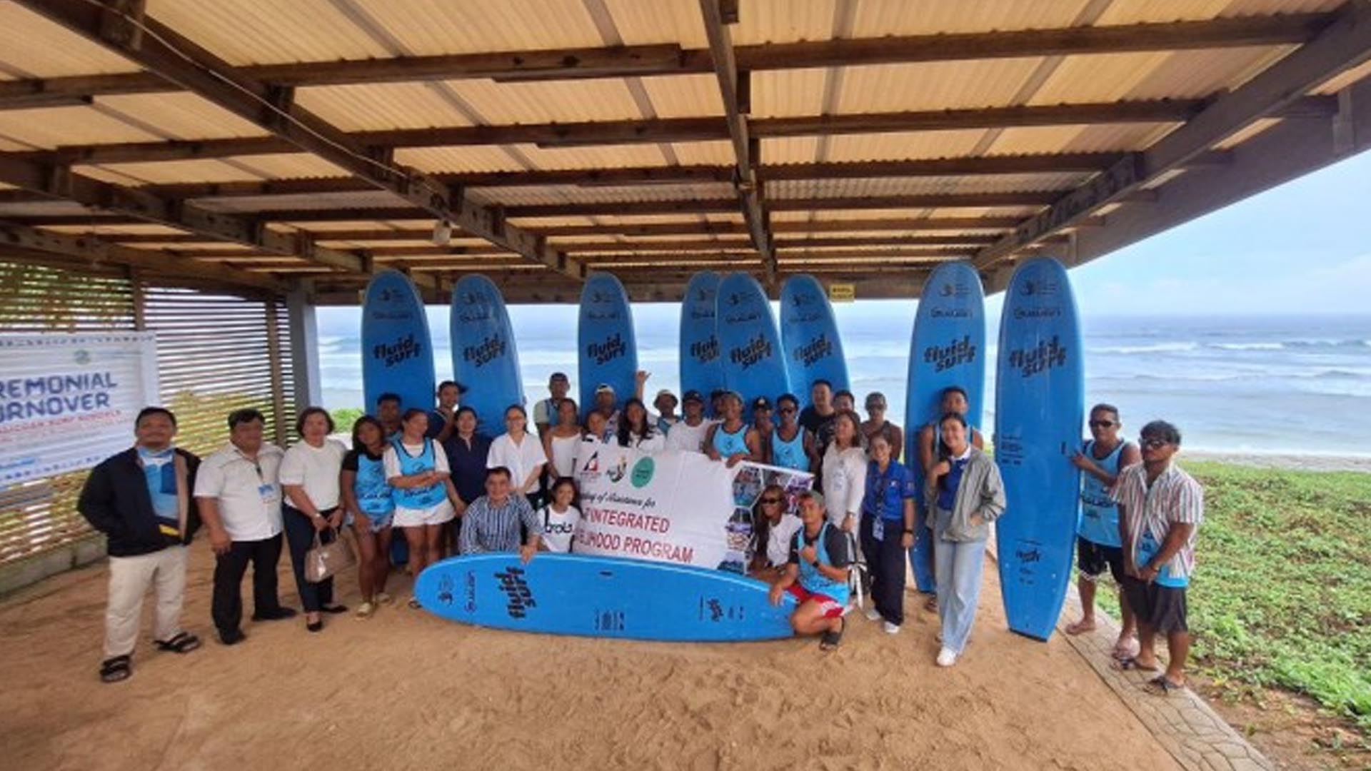 The Department of Labor and Employment (DOLE), through its Integrated Livelihood Program, has turned over 22 surf lesson boards and various surfing equipment to four surf schools in Calicoan Island, Guiuan, Eastern Samar, marking the first project of its kind in the region.