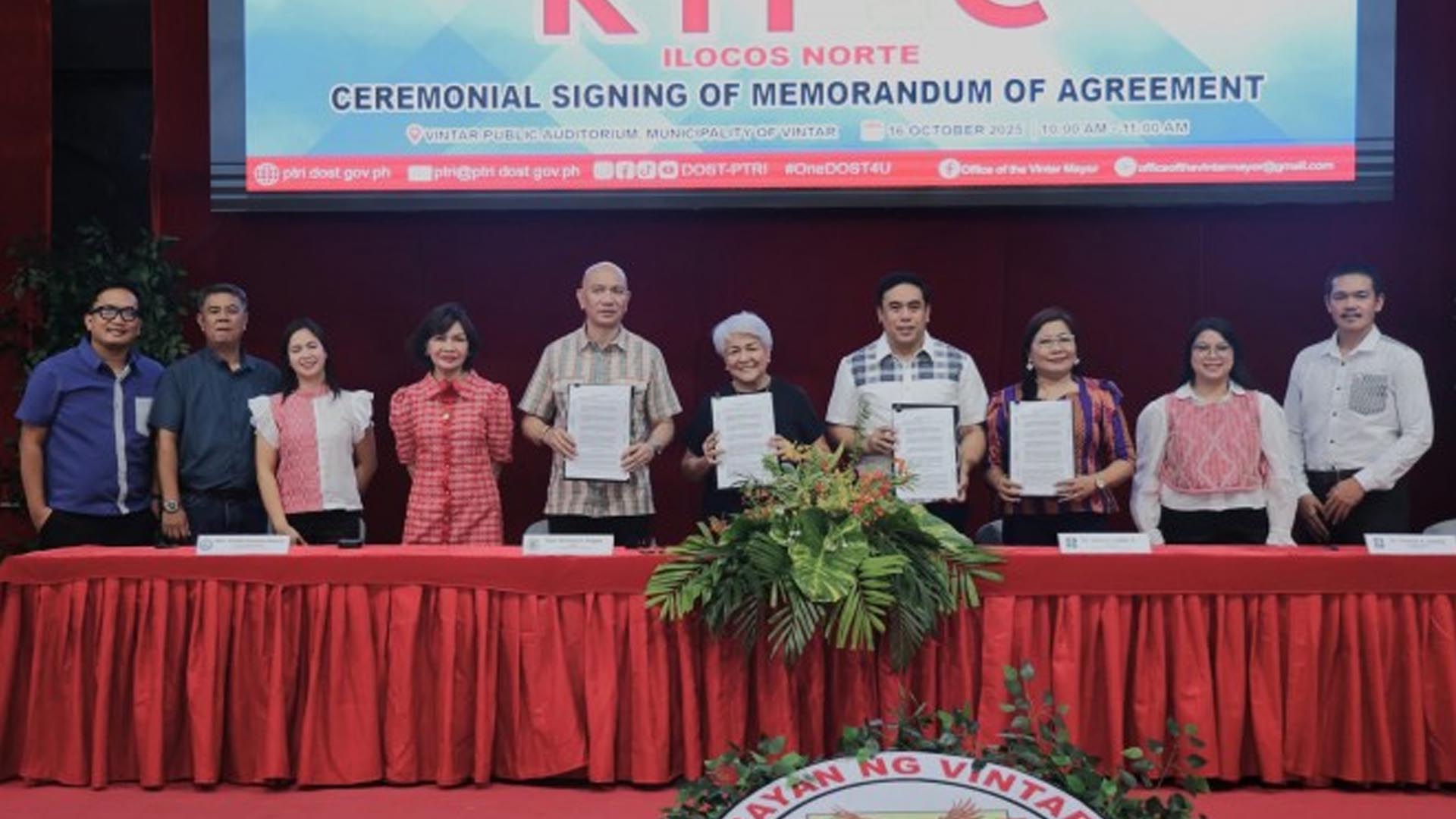 The local government of Vintar, Ilocos Norte on Thursday signed a memorandum of agreement (MOA) with the Department of Science and Technology – Philippine Textile Research Institute (DOST-PTRI) for the development of a bamboo innovation and processing hub.